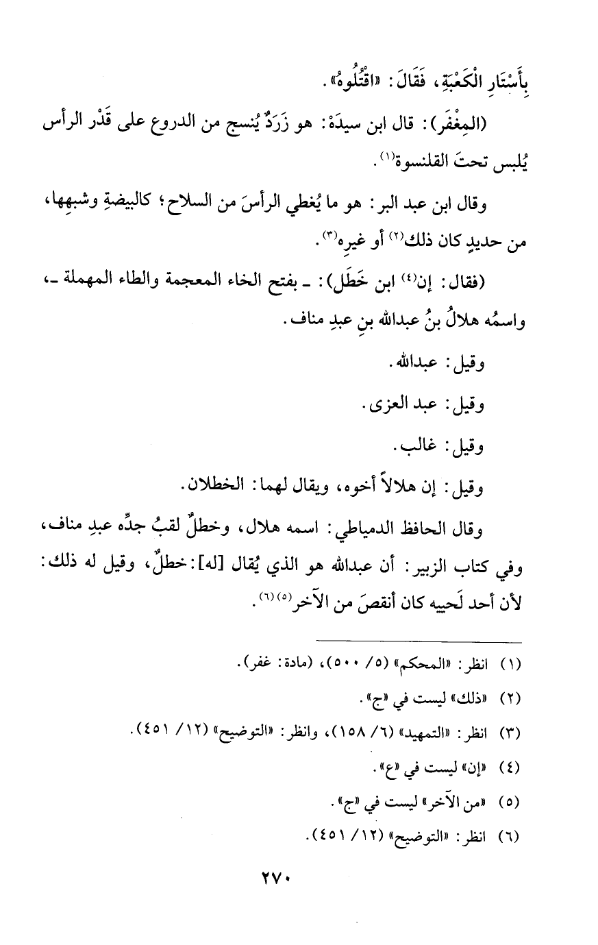 (فقال: إن (¬4) ابن خَطَل): -بفتح الخاء المعجمة والطاء المهملة-، واسمُه هلالُ بنُ عبد الله بنِ عبدِ مناف.