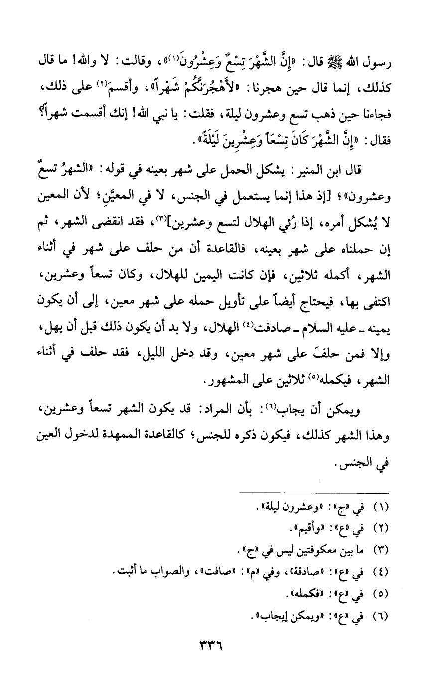 قال ابن المنير: يشكل الحمل على شهر بعينه في قوله: "الشهرُ تسعٌ وعشرون"؛ [إذ هذا إنما يستعمل في الجنس، لا في المعيَّنِ؛ لأن المعين لا يُشكل أمره، إذا رُئي الهلال لتسع وعشرين] (¬3)، فقد انقضى الشهر، ثم إن حملناه على شهر بعينه، فالقاعدة أن من حلف على شهر في أثناء الشهر، أكمله ثلاثين، فإن كانت اليمين للهلال، وكان تسعًا وعشرين، اكتفى بها، فيحتاج أيضًا على تأويل حمله على شهر معين، إلى أن يكون يمينه -عليه السلام- صادفت (¬4) الهلال، ولا بد أن يكون ذلك قبل أن يهل، وإلا فمن حلفَ على شهر معين، وقد دخل الليل، فقد حلف في أثناء الشهر، فيكمله (¬5) ثلاثين على المشهور.