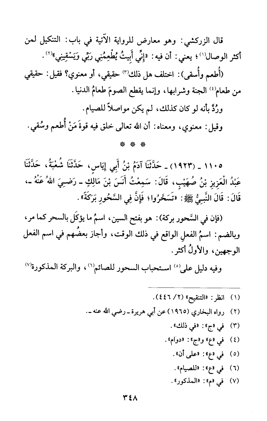 1105 - (1923) - حَدَّثَنَا آدَمُ بْنُ أَبِي إِيَاسٍ، حَدَّثَنَا شُعْبَةُ، حَدَّثَنَا عَبْدُ الْعَزِيزِ بْنُ صُهَيْبٍ، قَالَ: سَمِعْتُ أَنَسَ بْنَ مَالِكٍ - رَضِيَ اللهُ عَنْهُ -، قَالَ: قَالَ النَّبِيُّ - صلى الله عليه وسلم -: "تَسَحَّرُوا؛ فَإِنَّ فِي السَّحُورِ بَرَكَةً".