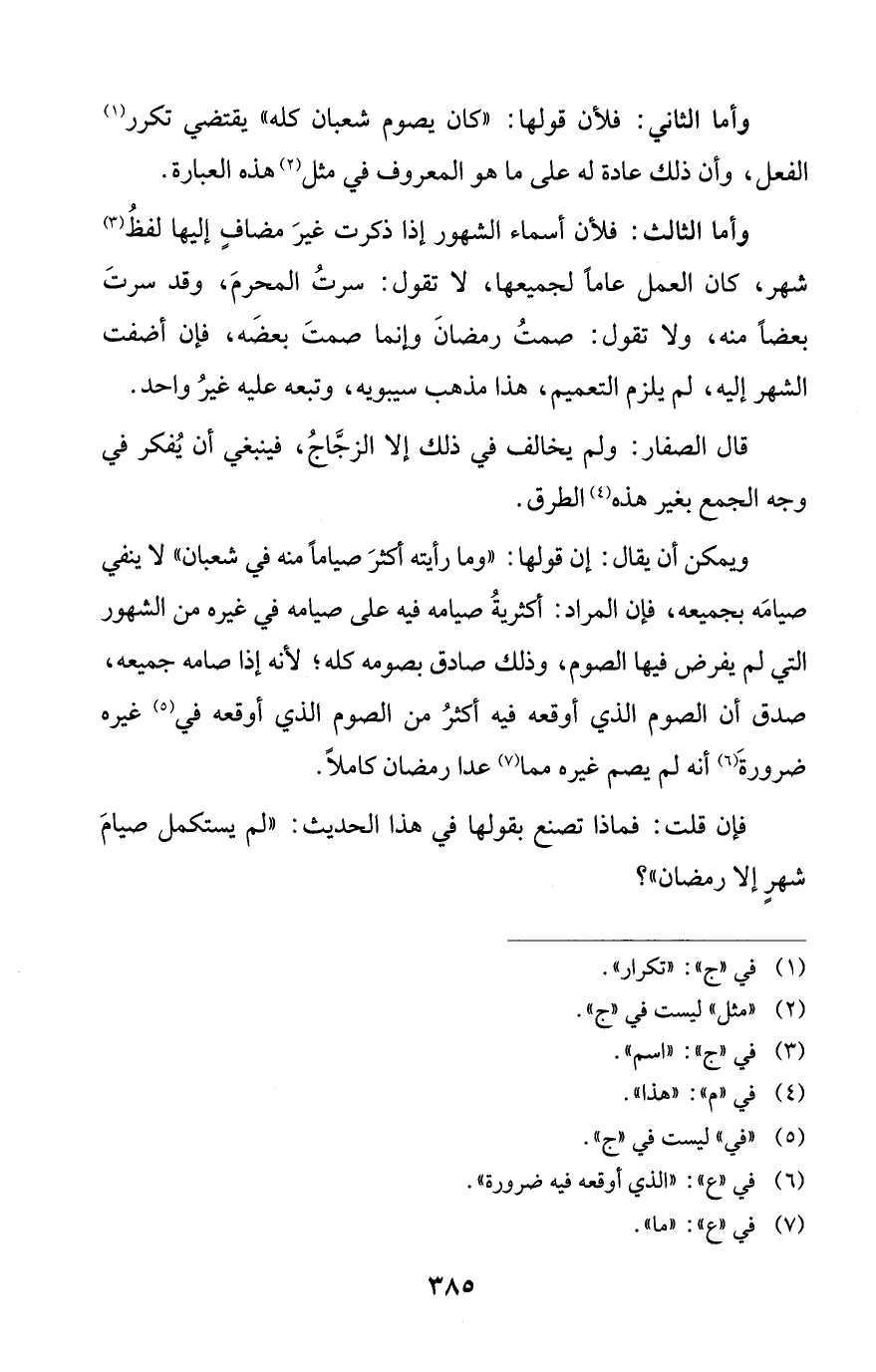 ويمكن أن يقال: إن قولها: "وما رأيته أكثرَ صيامًا منه في شعبان" لا ينفي صيامَه بجميعه، فإن المراد: أكثريةُ صيامه فيه على صيامه في غيره من الشهور التي لم يفرض فيها الصوم، وذلك صادق بصومه كله؛ لأنه إذا صامه جميعه، صدق أن الصوم الذي أوقعه فيه أكثرُ من الصوم الذي أوقعه في (¬5) غيره ضرورةَ (¬6) أنه لم يصم غيره مما (¬7) عدا رمضان كاملًا.