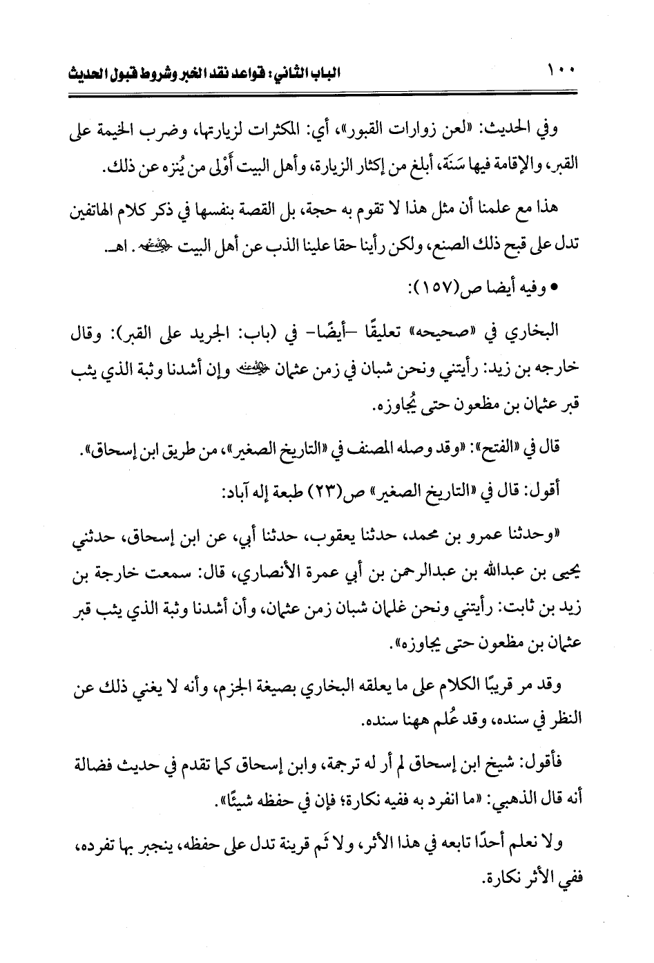البخاري في "صحيحه" تعليقًا -أيضًا- في (باب: الجريد على القبر): وقال خارجه بن زيد: رأيتني ونحن شبان في زمن عثمان -رضي الله عنه- إن أشدنا وثبة الذي يثب قبر عثمان بن مظعون حتى يُجاوزه.