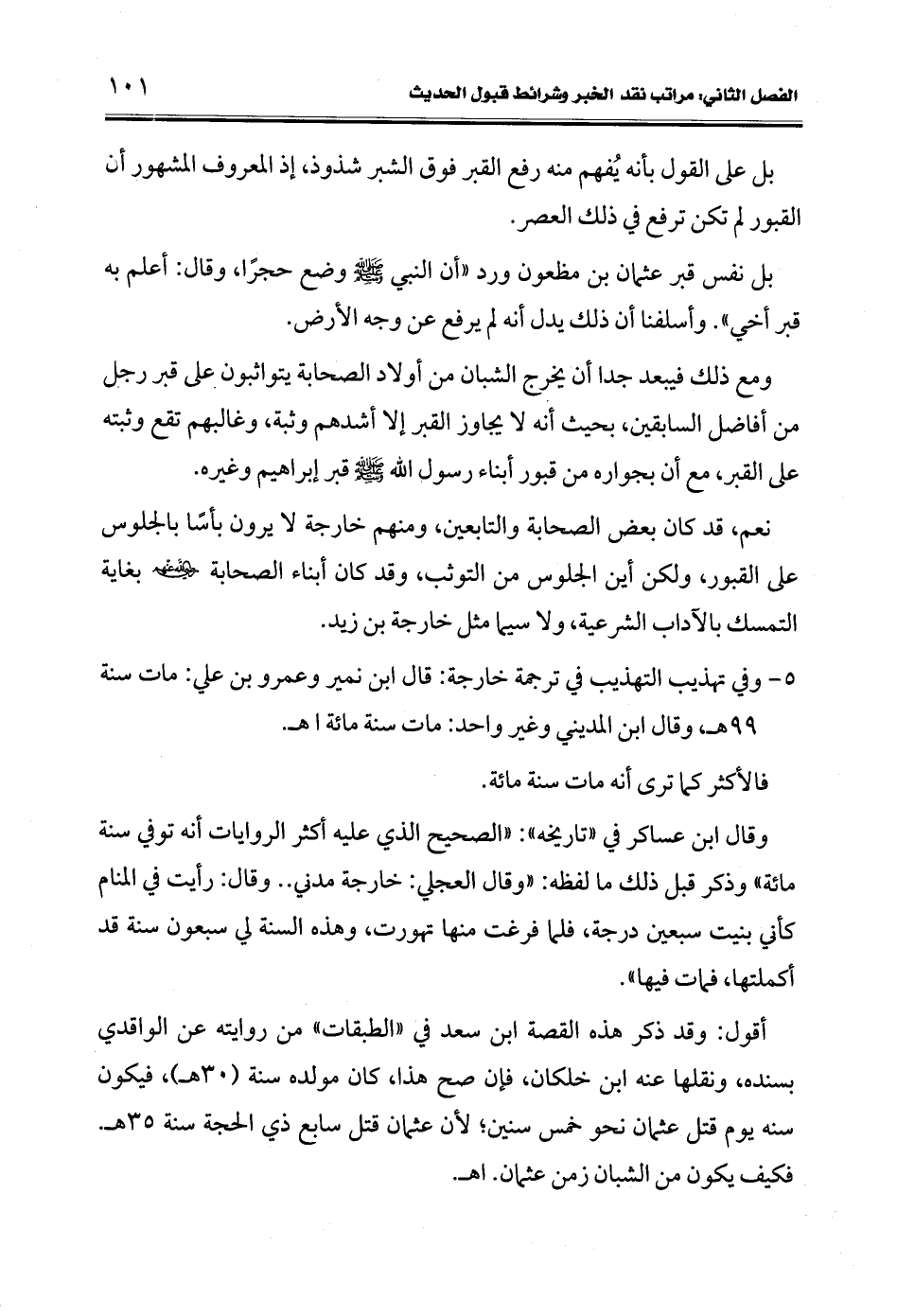بل نفس قبر عثمان بن مظعون ورد "أن النبي -صلى الله عليه وسلم- وضع حجرًا، وقال: أعلم به قبر أخي". وأسلفنا أن ذلك يدل أنه لم يرفع عن وجه الأرض.