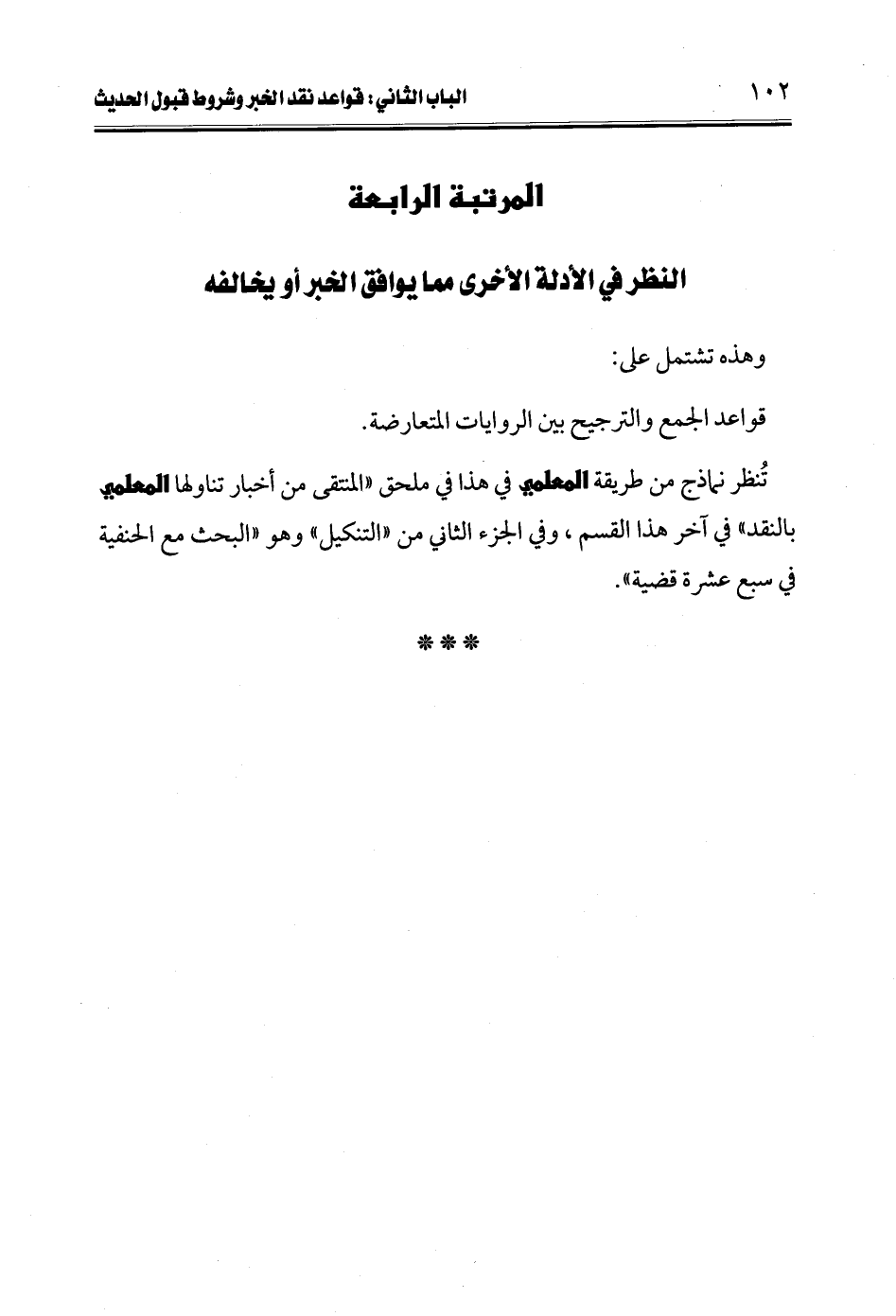 المرتبة الرابعة: النظر في الأدلة الأخري مما يوافق الخبر أو يخالفه