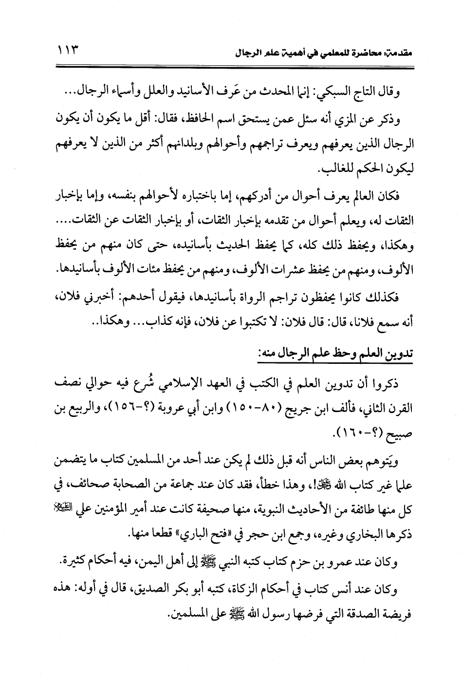 فكان العالم يعرف أحوال من أدركهم، إما باختباره لأحوالهم بنفسه، وإما بإخبار الثقات له، ويعلم أحوال من تقدمه بإخبار الثقات، أو بإخبار الثقات عن الثقات .... وهكذا، ويحفظ ذلك كله، كما يحفظ الحديث بأسانيده، حتى كان منهم من يحفظ الألوف، ومنهم من يحفظ عشرات الألوف، ومنهم من يحفظ مئات الألوف بأسانيدها.