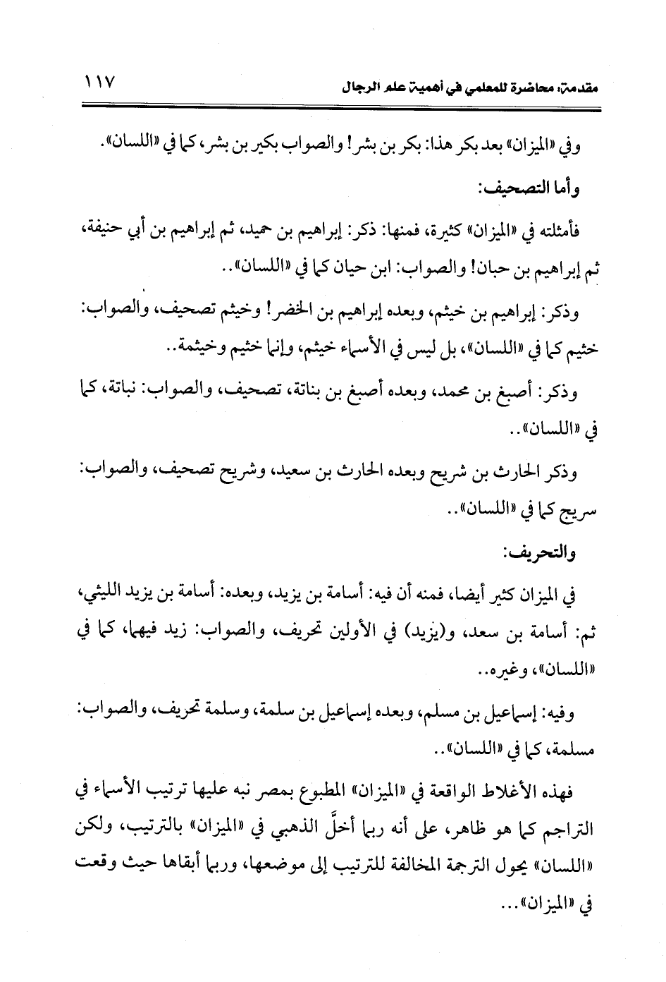 فهذه الأغلاط الواقعة في "الميزان" المطبوع بمصر نبه عليها ترتيب الأسماء في التراجم كما هو ظاهر، على أنه ربما أخلَّ الذهبي في "الميزان" بالترتيب، ولكن "اللسان" يحول الترجمة المخالفة للترتيب إلى موضعها، وربما أبقاها حيث وقعت في "الميزان" ...