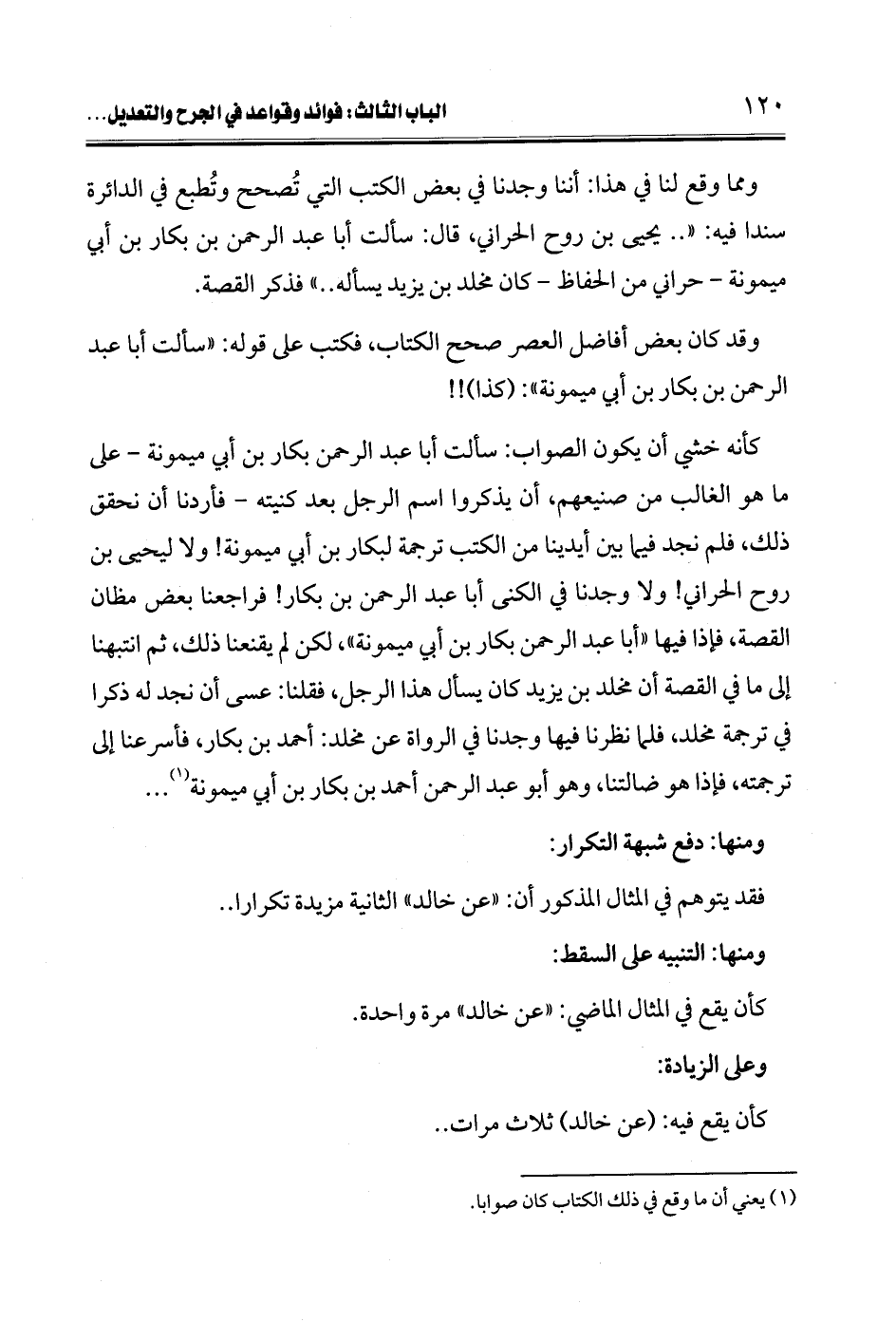 ومما وقع لنا في هذا: أننا وجدنا في بعض الكتب التي تُصحح وتُطبع في الدائرة سندا فيه: " .. يحيى بن روح الحراني، قال: سألت أبا عبد الرحمن بن بكار بن أبي ميمونة -حراني من الحفاظ- كان مخلد بن يزيد يسأله .. " فذكر القصة.