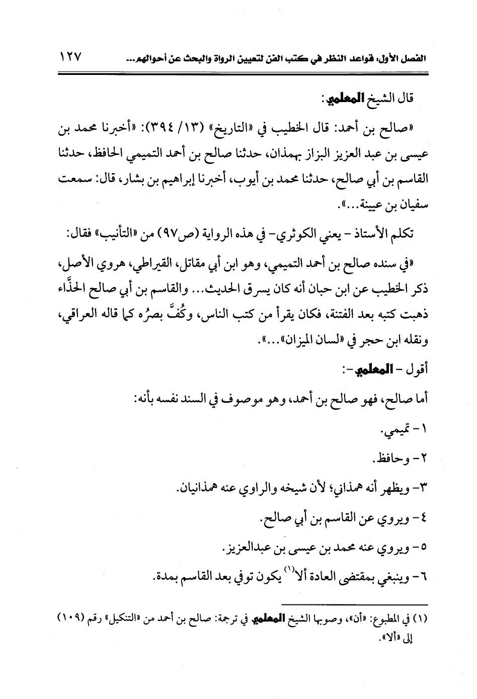 (¬1) في المطبوع: "أن"، وصوبها الشيخ المعلمي في ترجمة: صالح بن أحمد من "التنكيل" رقم (109) إلى "ألا".