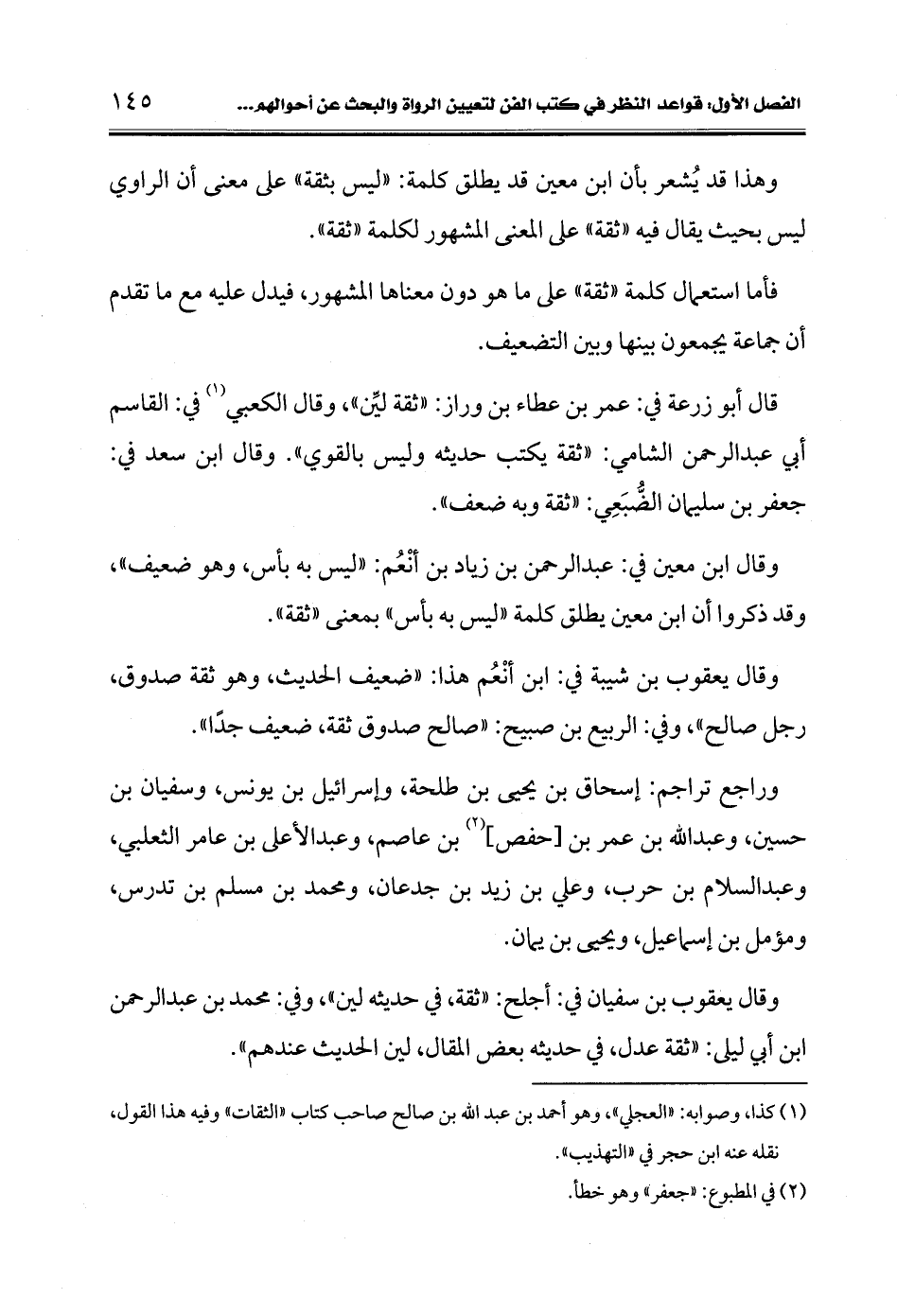 وقال يعقوب بن سفيان في: أجلح: "ثقة، في حديثه لين"، وفي: محمد بن عبد الرحمن ابن أبي ليلى: "ثقة عدل، في حديثه بعض المقال، لين الحديث عندهم".