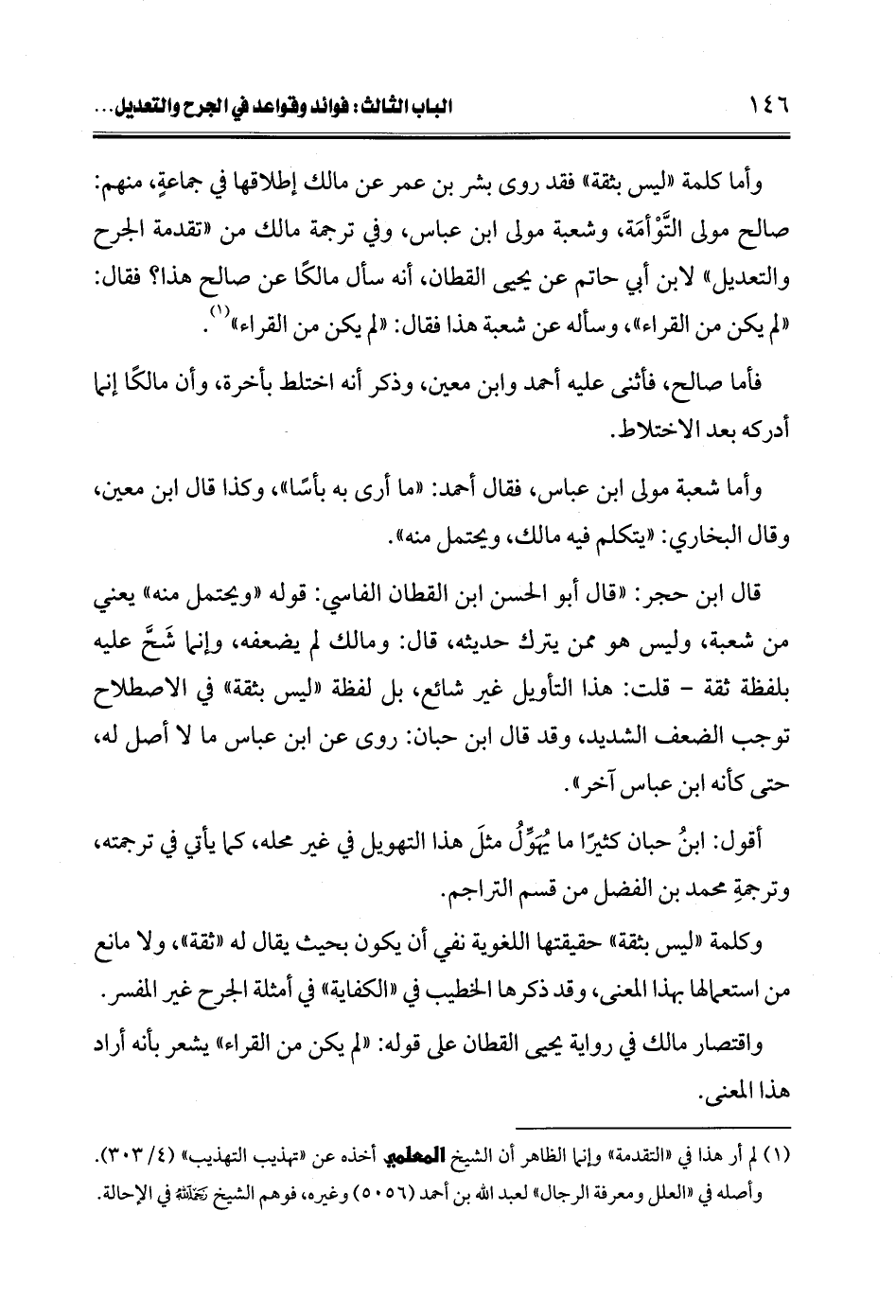 وأما كلمة "ليس بثقة" فقد روى بشر بن عمر عن مالك إطلاقها في جماعةٍ، منهم: صالح مولى التَّوْأمَة، وشعبة مولى ابن عباس، وفي ترجمة مالك من "تقدمة الجرح والتعديل" لابن أبي حاتم عن يحيى القطان، أنه سأل مالكًا عن صالح هذا؟ فقال: "لم يكن من القراء"، وسأله عن شعبة هذا فقال: "لم يكن من القراء" (¬1).