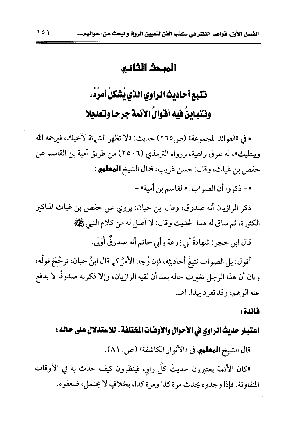 • في "الفوائد المجموعة" (ص 265) حديث: "لا تظهر الشماتة لأخيك، فيرحمه الله ويبتليك"، له طرق واهية، ورواه الترمذي (2506) من طريق أمية بن القاسم عن حفص بن غياث، وقال: حسن غريب، فقال الشيخ المعلمي: