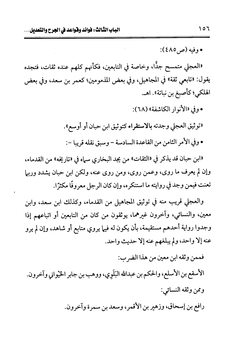 "توثيق العجلي وجدته بالاستقراء كتوثيق ابن حبان أو أوسع".