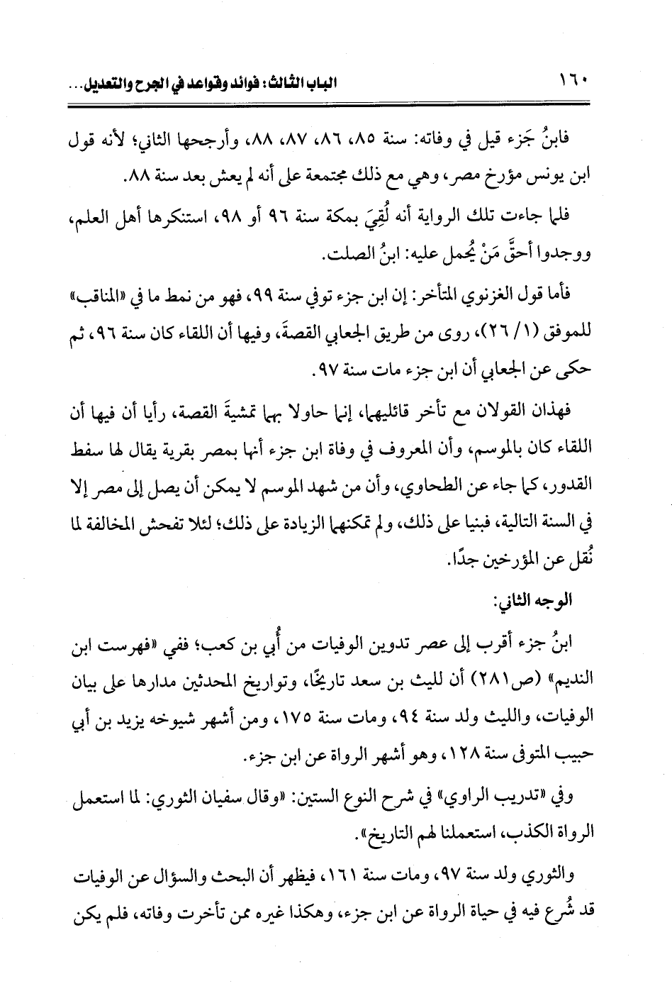 والثوري ولد سنة 97، ومات سنة 161، فيظهر أن البحث والسؤال عن الوفيات قد شُرع فيه في حياة الرواة عن ابن جزء، وهكذا غيره ممن تأخرت وفاته، فلم يكن