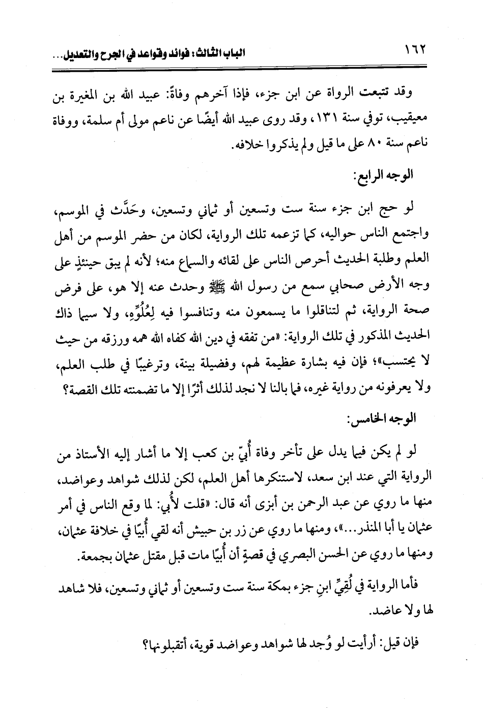 لو حج ابن جزء سنة ست وتسعين أو ثماني وتسعين، وحَدَّث في الموسم، واجتمع الناس حواليه، كما تزعمه تلك الرواية، لكان من حضر الموسم من أهل العلم وطلبة الحديث أحرص الناس على لقائه والسماع منه؛ لأنه لم يبق حينئذٍ على وجه الأرض صحابي سمع من رسول الله -صلى الله عليه وسلم- وحدث عنه إلا هو، على فرض صحة الرواية، ثم لتناقلوا ما يسمعون منه وتنافسوا فيه لِعُلُوِّهِ، ولا سيما ذاك الحديث المذكور في تلك الرواية: "من تفقه في دين الله كفاه الله همه ورزقه من حيث لا يحتسب"، فإن فيه بشارة عظيمة لهم، وفضيلة بينة، وترغيبًا في طلب العلم، ولا يعرفونه من رواية غيره، فما بالنا لا نجد لذلك أثرًا إلا ما تضمنته تلك القصة؟