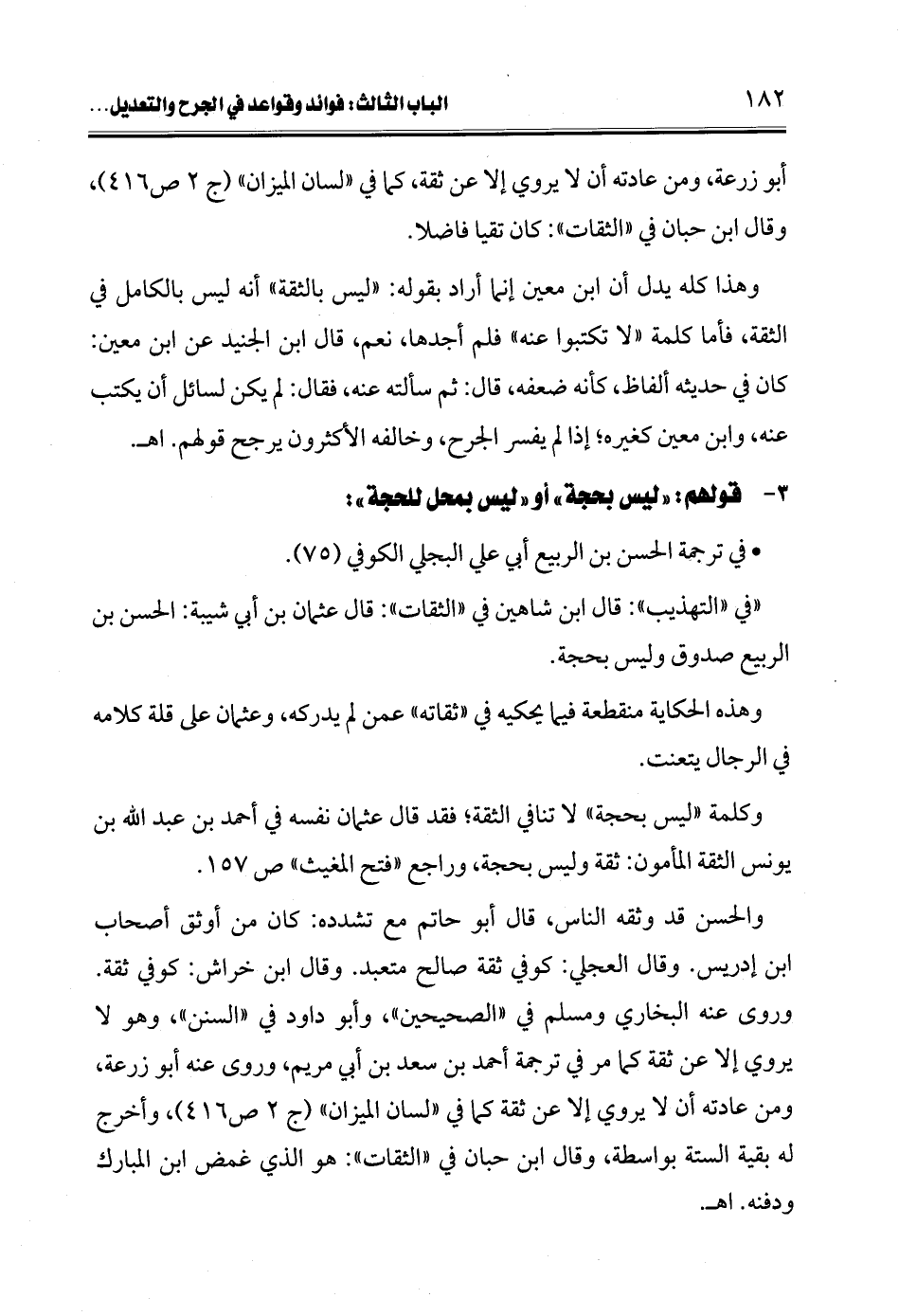 وكلمة "ليس بحجة" لا تنافي الثقة؛ فقد قال عثمان نفسه في أحمد بن عبد الله بن يونس الثقة المأمون: ثقة وليس بحجة، وراجع "فتح المغيث" ص 157.