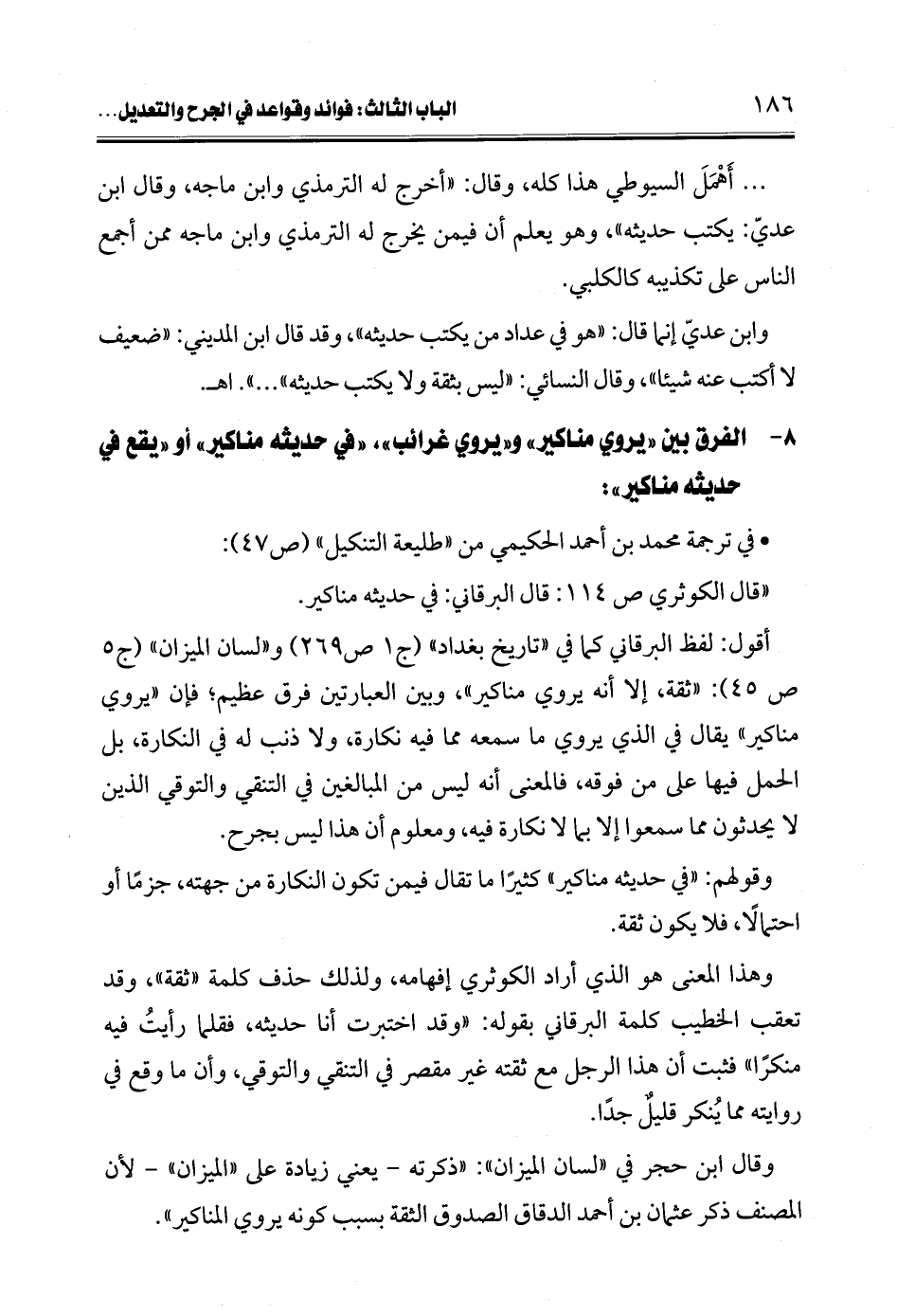 أقول: لفظ البرقاني كما في "تاريخ بغداد" (ج 1 ص 269) و"لسان الميزان" (ج 5 ص 45): "ثقة، إلا أنه يروي مناكير"، وبين العبارتين فرق عظيم؛ فإن "يروي مناكير" يقال في الذي يروي ما سمعه مما فيه نكارة، ولا ذنب له في النكارة، بل الحمل فيها على من فوقه، فالمعنى أنه ليس من المبالغين في التنقي والتوقي الذين لا يحدثون مما سمعوا إلا بما لا نكارة فيه، ومعلوم أن هذا ليس بجرح.