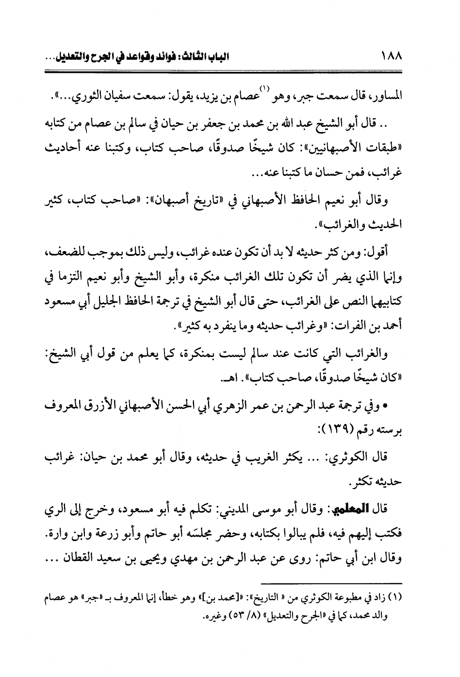 (¬1) زاد في مطبوعة الكوثري من "التاريخ": " [محمد بن] " وهو خطأ، إنما المعروف بـ"جبر" هو عصام والد محمد، كما في "الجرح والتعديل" (8/ 53) وغيره.