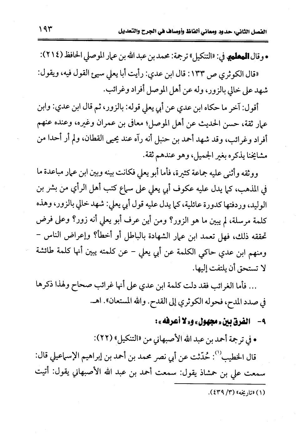 • وقال المعلمي في: "التنكيل" ترجمة: محمد بن عبد الله بن عمار الموصلي الحافظ (214):
