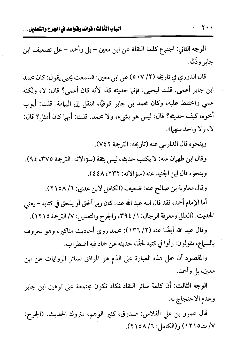 الوجه الثالث: أن كلمة سائر النقاد تكاد تكون مجتمعة على توهين ابن جابر وعدم الاحتجاج به.
