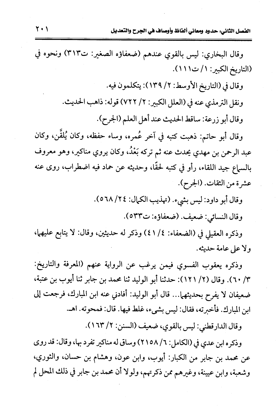 وقال البخاري: ليس بالقوي عندهم (ضعفاؤه الصغير: ت 313) ونحوه في (التاريخ الكبير: 1 / ت 111).