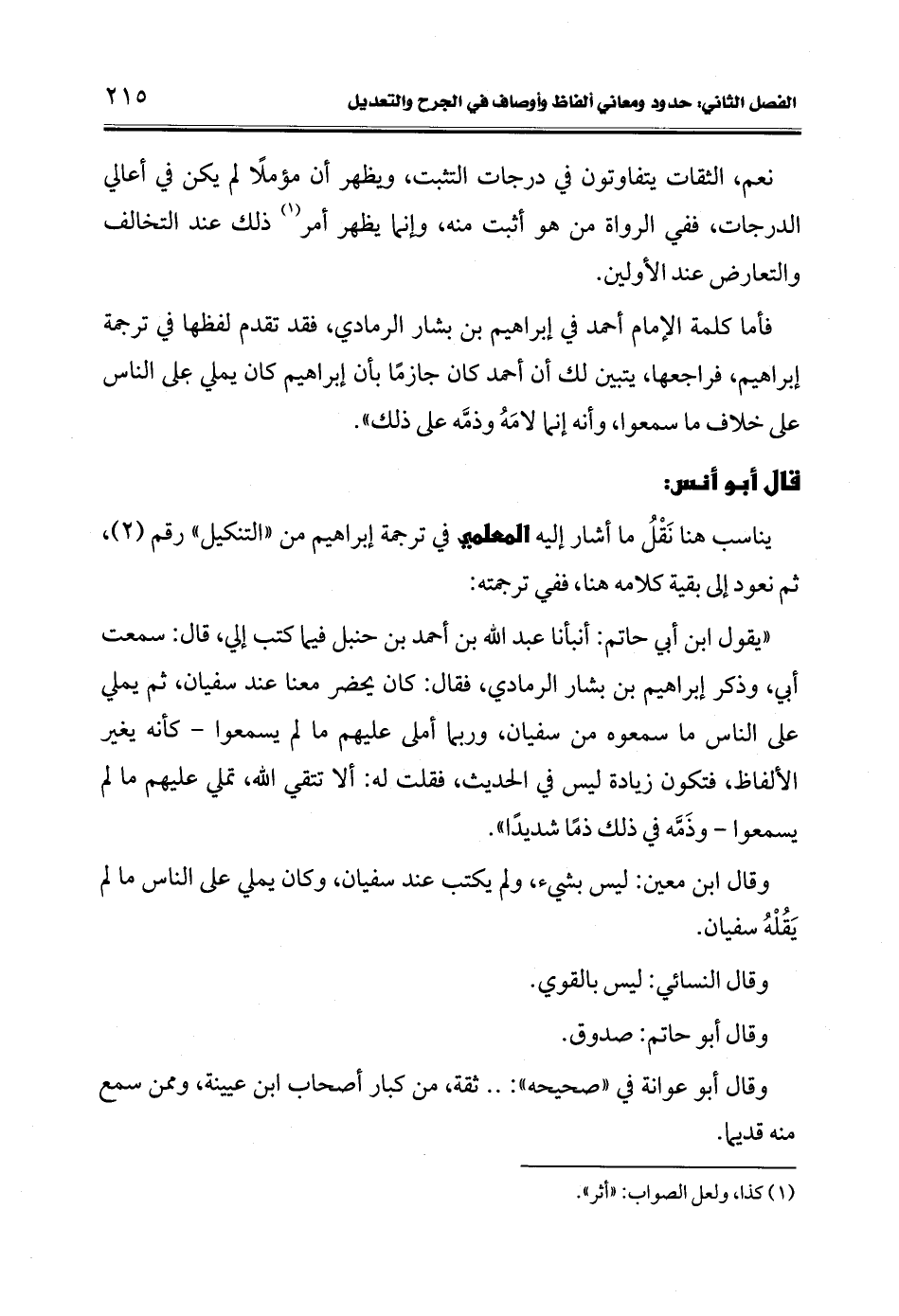 يناسب هنا نَقْلُ ما أشار إليه المعلمي في ترجمة إبراهيم من "التنكيل" رقم (2)، ثم نعود إلى بقية كلامه هنا، ففي ترجمته: