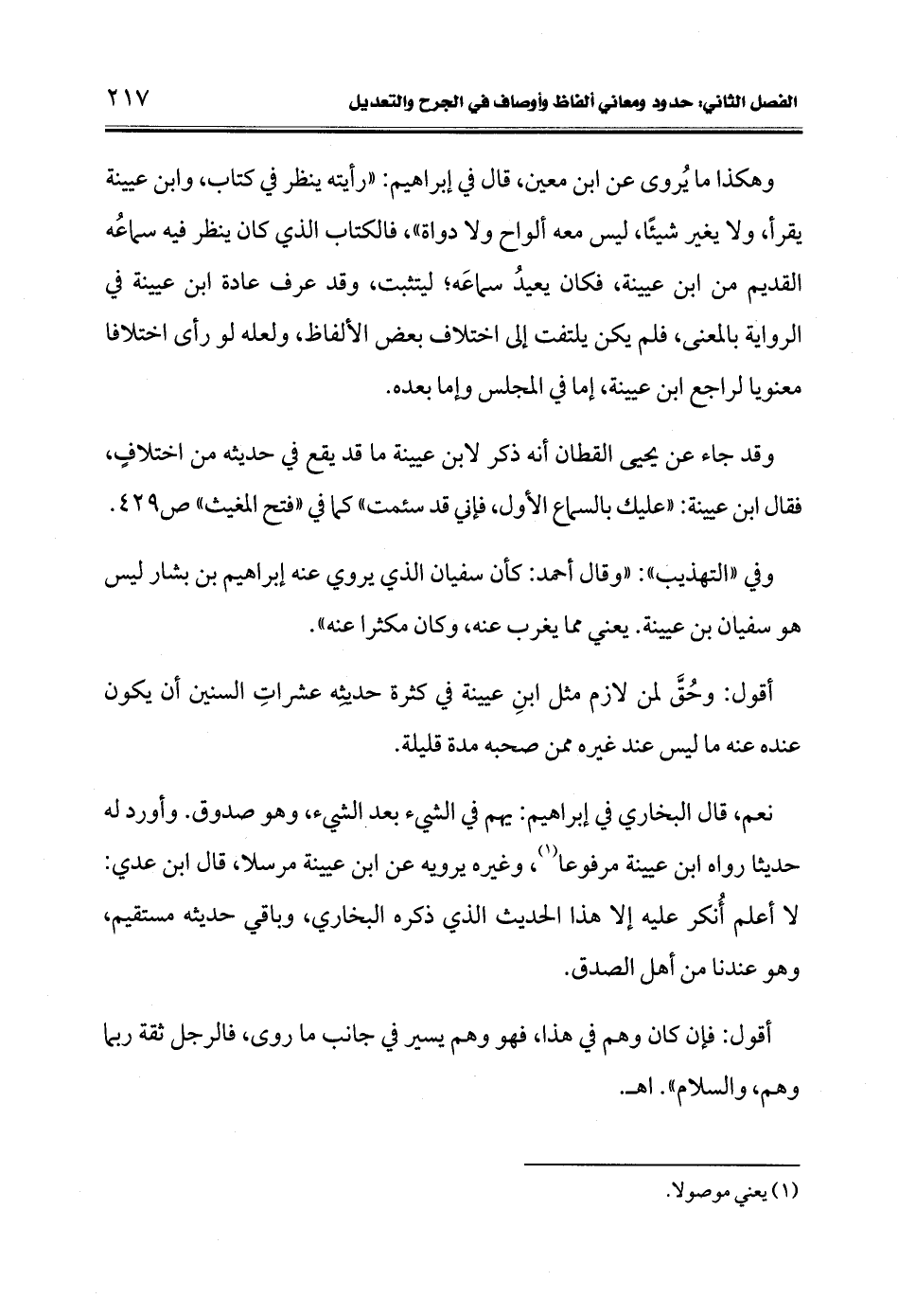وهكذا ما يُروى عن ابن معين، قال في إبراهيم: "رأيته ينظر في كتاب، وابن عيينة يقرأ، ولا يغير شيئًا، ليس معه ألواح ولا دواة"، فالكتاب الذي كان ينظر فيه سماعُه القديم من ابن عيينة، فكان يعيدُ سماعَه؛ ليتثبت، وقد عرف عادة ابن عيينة في الرواية بالمعنى، فلم يكن يلتفت إلى اختلاف بعض الألفاظ، ولعله لو رأى اختلافا معنويا لراجع ابن عيينة، إما في المجلس وإما بعده.