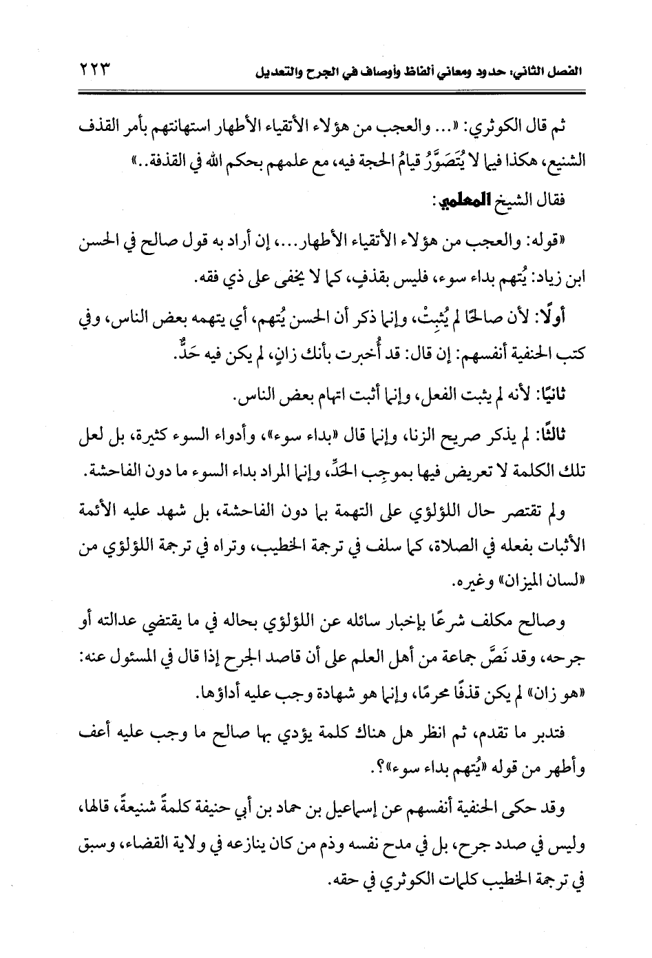 "قوله: والعجب من هؤلاء الأتقياء الأطهار ... ، إن أراد به قول صالح في الحسن ابن زياد: يُتهم بداء سوء، فليس بقذفٍ، كما لا يخفى على ذي فقه.