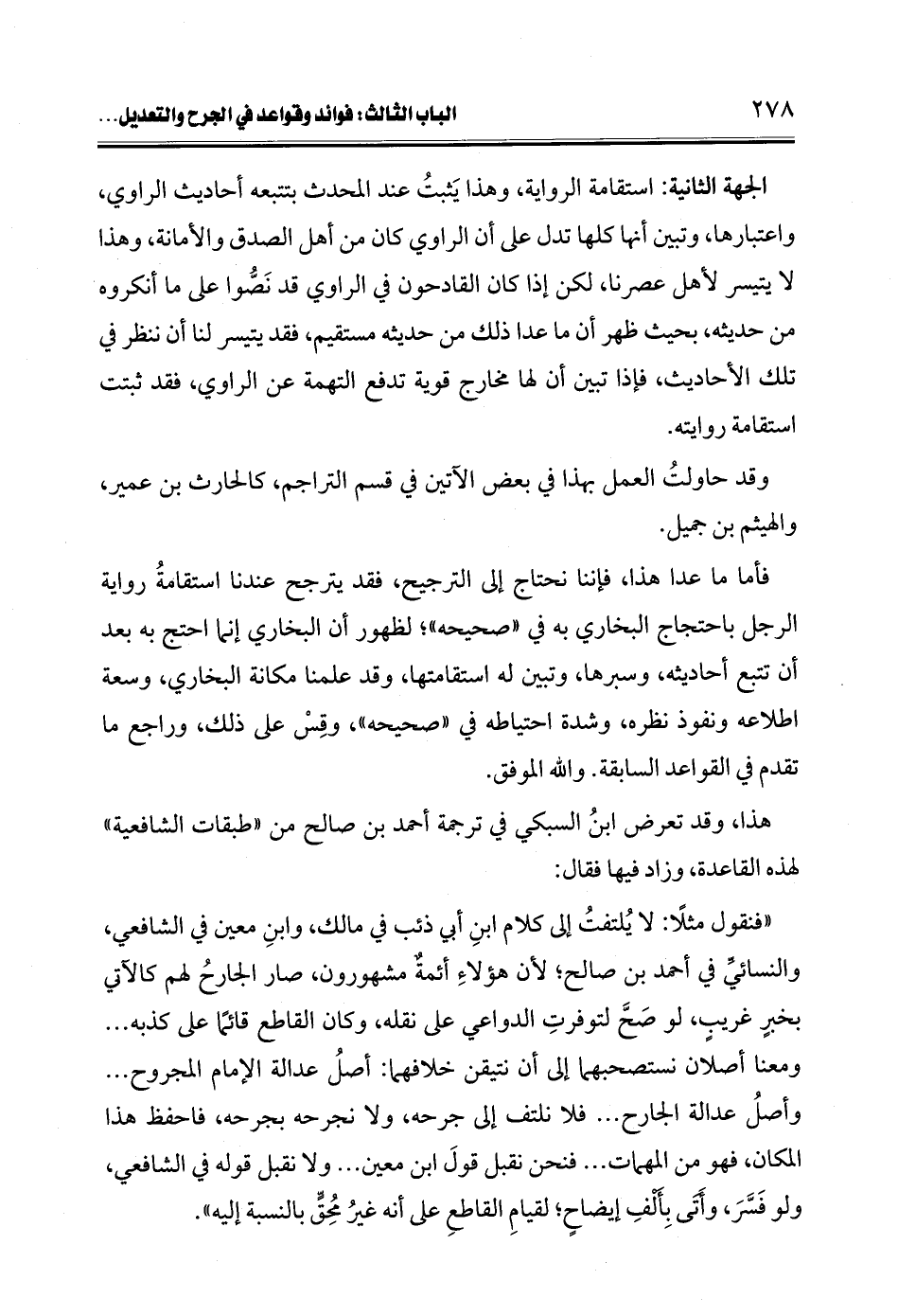فأما ما عدا هذا، فإننا نحتاج إلى الترجيح، فقد يترجح عندنا استقامةُ رواية الرجل باحتجاج البخاري به في "صحيحه"؛ لظهور أن البخاري إنما احتج به بعد أن تتبع أحاديثه، وسبرها، وتبين له استقامتها، وقد علمنا مكانة البخاري، وسعة اطلاعه ونفوذ نظره، وشدة احتياطه في "صحيحه"، وقِسْ على ذلك، وراجع ما تقدم في القواعد السابقة. والله الموفق.