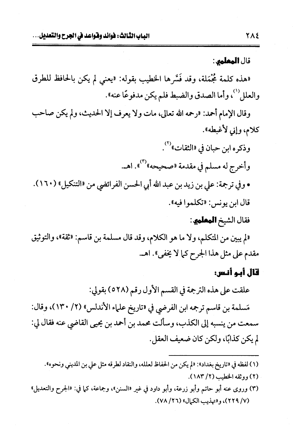 (¬1) لفظه في "تاريخ بغداد": "لم يكن من الحفاظ لعلله، والنقاد لطرقه مثل علي بن المديني ونحوه".