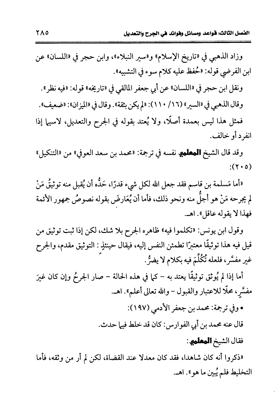 وقد قال الشيخ المعلمي نفسه في ترجمة: "محمد بن سعد العوفي" من "التنكيل" (205):