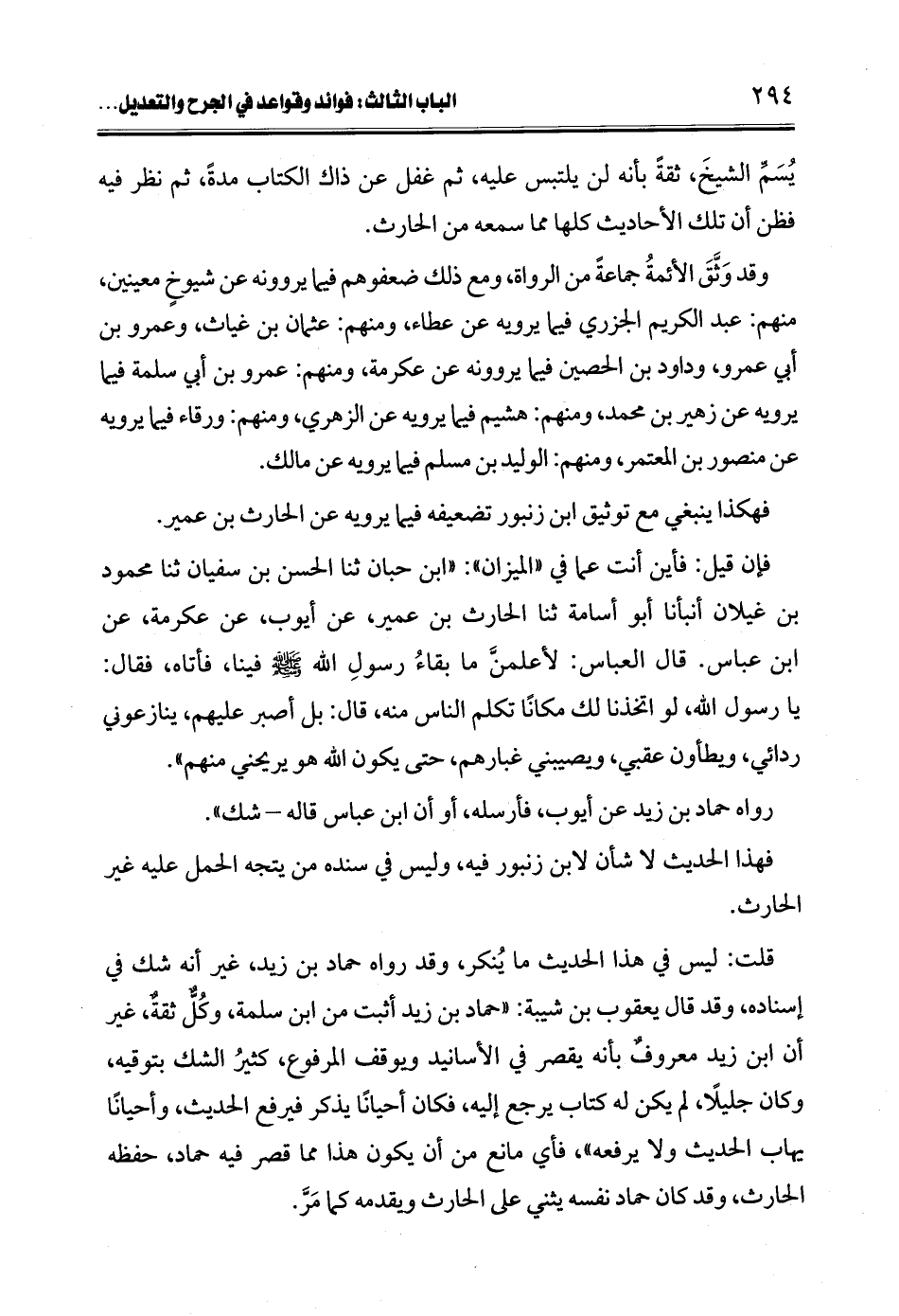 قلت: ليس في هذا الحديث ما يُنكر، وقد رواه حماد بن زيد، غير أنه شك في إسناده، وقد قال يعقوب بن شيبة: "حماد بن زيد أثبت من ابن سلمة، وكُلٌّ ثقةٌ، غير أن ابن زيد معروفٌ بأنه يقصر في الأسانيد ويوقف المرفوع، كثيرُ الشك بتوقيه، وكان جليلًا، لم يكن له كتاب يرجع إليه، فكان أحيانًا يذكر فيرفع الحديث، وأحيانًا يهاب الحديث ولا يرفعه"، فأي مانع من أن يكون هذا مما قصر فيه حماد، حفظه الحارث، وقد كان حماد نفسه يثني على الحارث ويقدمه كما مَرَّ.