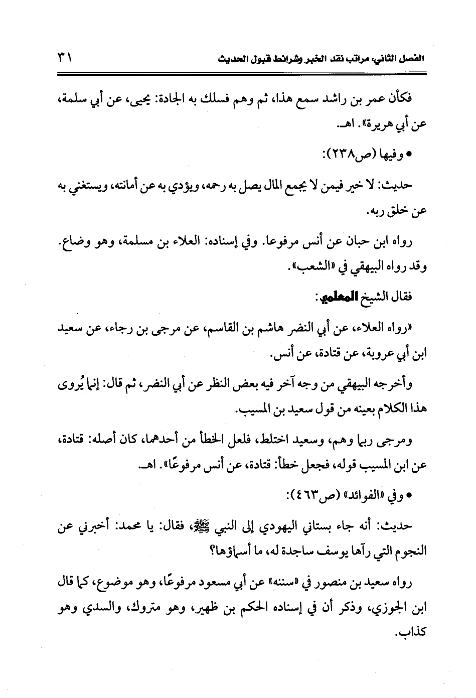 "رواه العلاء، عن أبي النضر هاشم بن القاسم، عن مرجى بن رجاء، عن سعيد ابن أبي عروبة، عن قتادة، عن أنس.