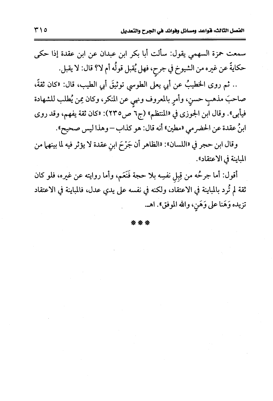 وقال ابن حجر في "اللسان": "الظاهر أن جَرْحَ ابنِ عقدة لا يؤثر فيه لما بينهما من المباينة في الاعتقاد".
