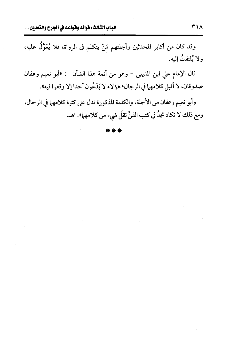 وأبو نعيم وعفان من الأجلة، والكلمة المذكورة تدل على كثرة كلامهما في الرجال، ومع ذلك لا تكاد تجدُ في كتب الفنِّ نقلَ شيء من كلامهما". اهـ.