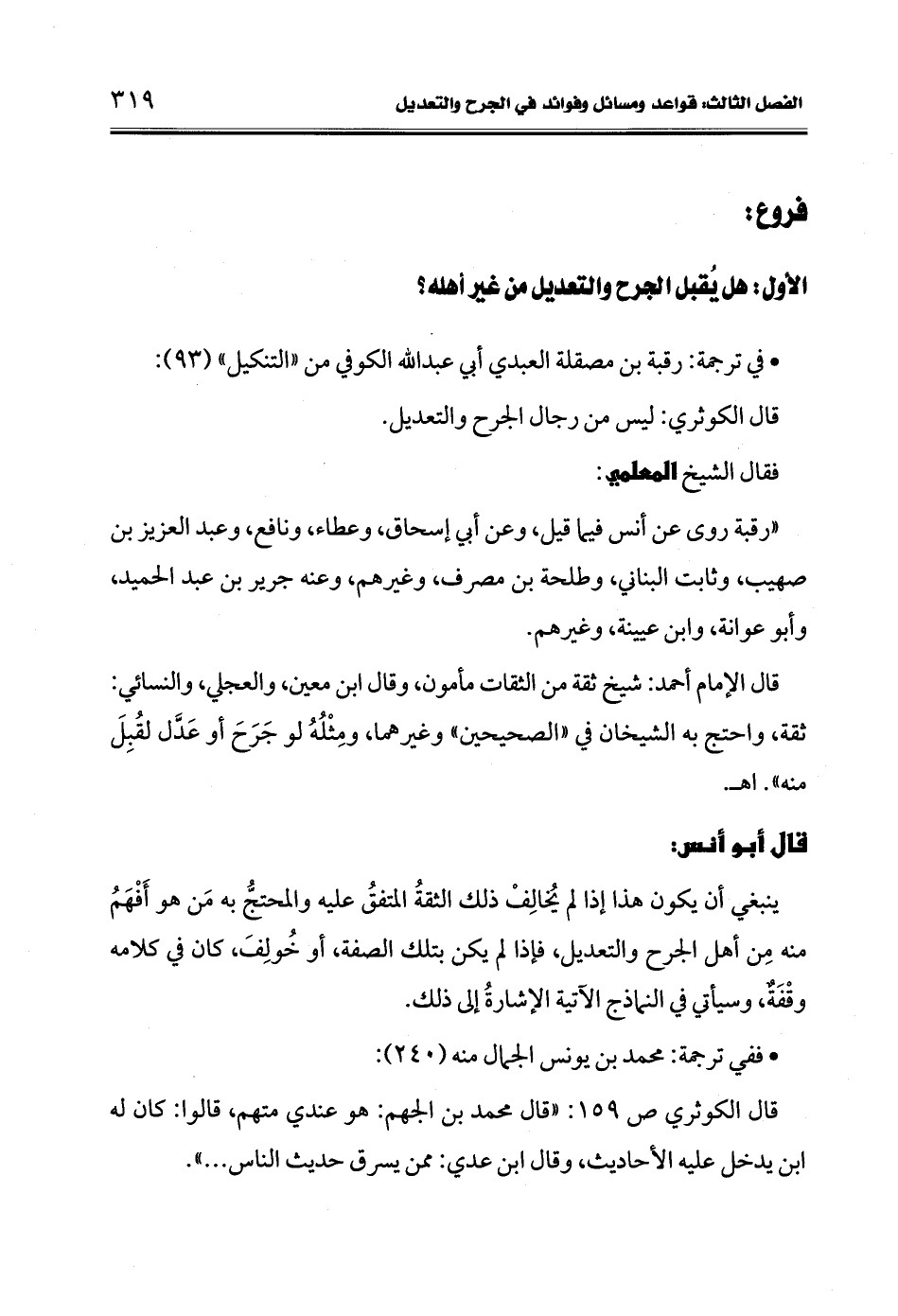 الفرع الأول: هل يُقبل الجرح والتعديل من غير أهله؟