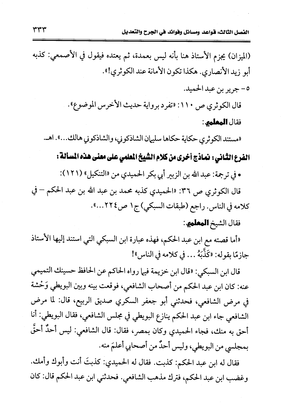 • في ترجمة: عبد الله بن الزبير أبي بكر الحميدي من "التنكيل" (121):