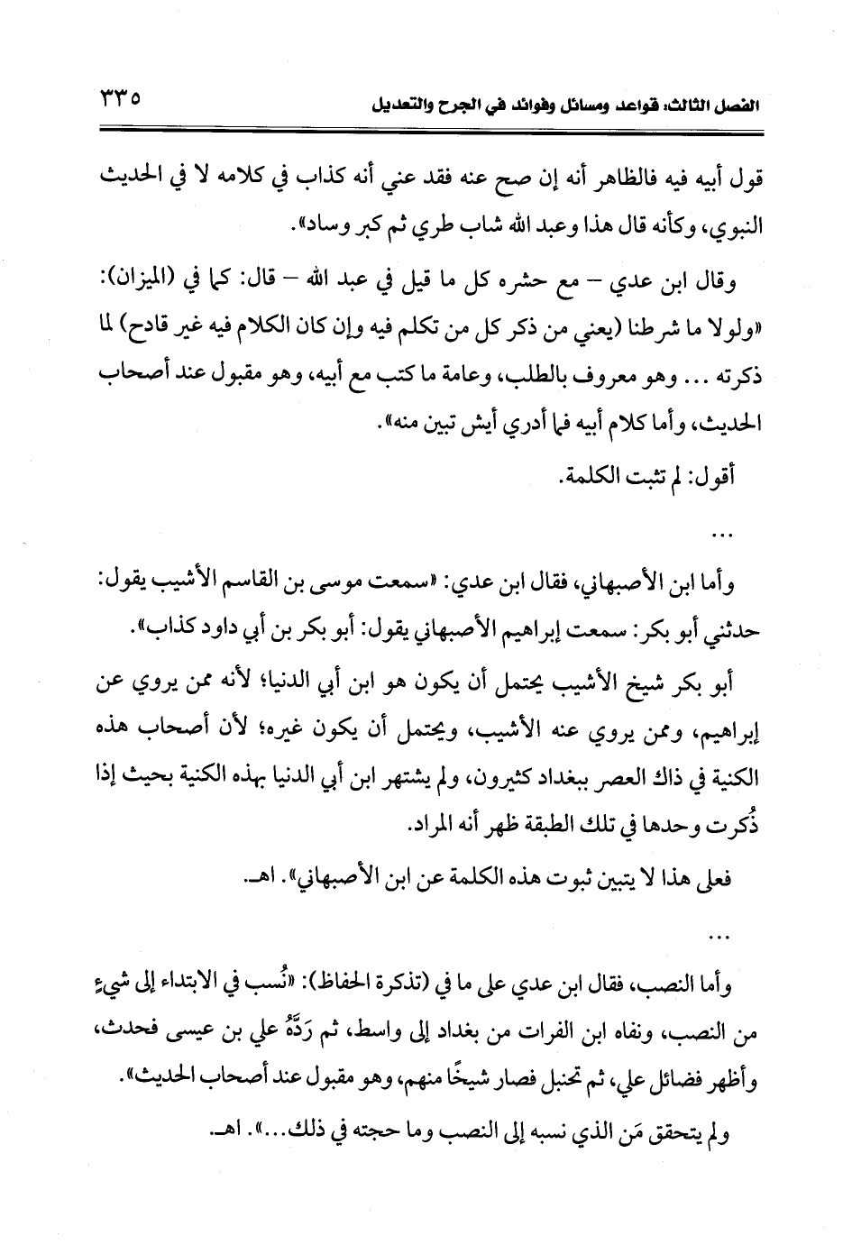 وقال ابن عدي -مع حشره كل ما قيل في عبد الله- قال: كما في (الميزان): "ولولا ما شرطنا (يعني من ذكر كل من تكلم فيه وإن كان الكلام فيه غير قادح) لما ذكرته ... وهو معروف بالطلب، وعامة ما كتب مع أبيه، وهو مقبول عند أصحاب الحديث، وأما كلام أبيه فما أدري أيش تبين منه".