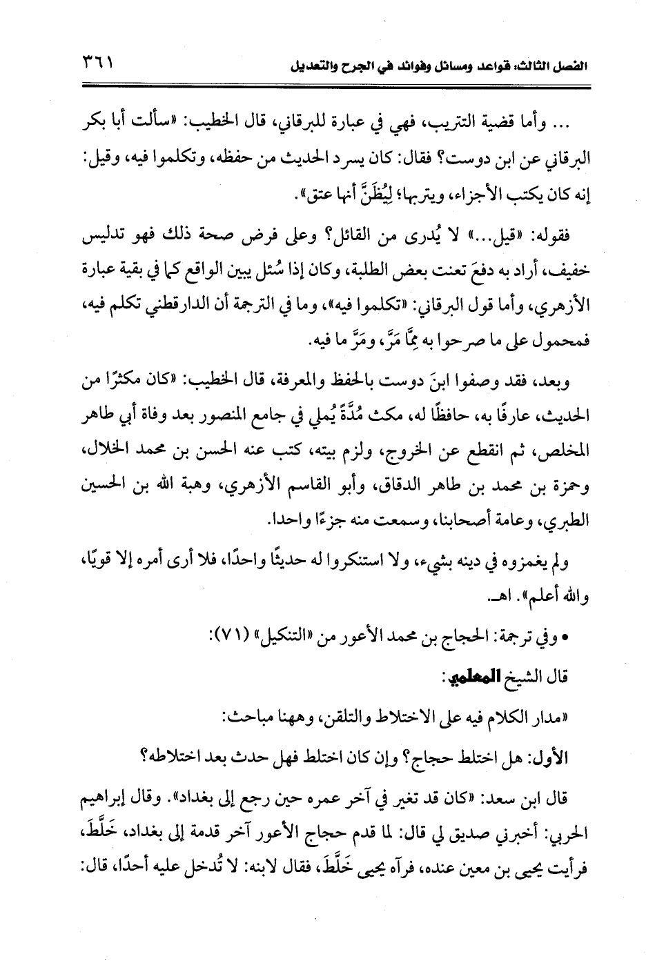 • وفي ترجمة: الحجاج بن محمد الأعور من "التنكيل" (71):