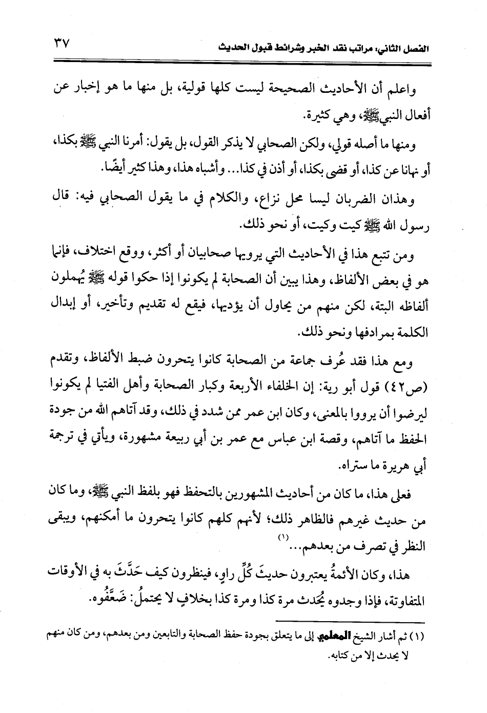 (¬1) ثم أشار الشيخ المعلمي بلى ما يتعلق بجودة حفظ الصحابة والتابعين ومن بعدهم، ومن كان منهم لا يحدث إلا من كتابه.