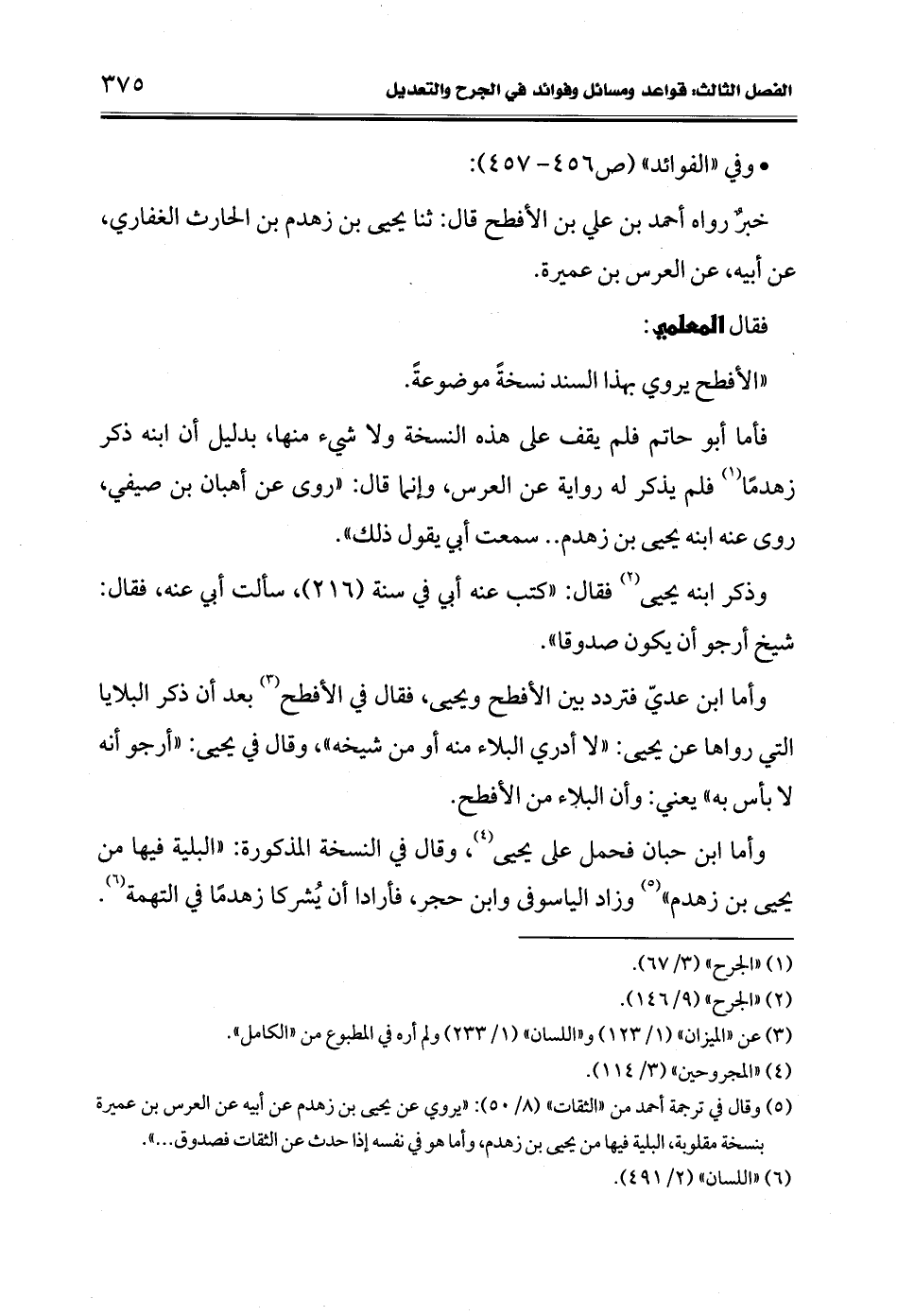 فأما أبو حاتم فلم يقف على هذه النسخة ولا شيء منها، بدليل أن ابنه ذكر زهدمًا (¬1) فلم يذكر له رواية عن العرس، وإنما قال: "روى عن أهبان بن صيفي، روى عنه ابنه يحيى بن زهدم .. سمعت أبي يقول ذلك".