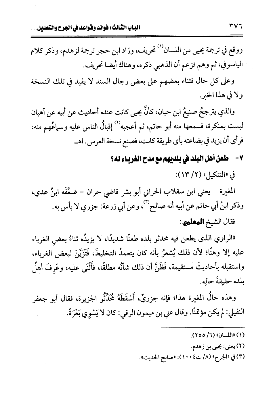 وهذه حالُ المغيرة هذا؛ فإنه جزريٌ، أَسْقَطَهُ مُحَدِّثُو الجزيرة، فقال أبو جعفر النفيلي: لم يكن مؤتمنًا. وقال علي بن ميمون الرقي: كان لا يَسْوِي بَعْرَةً.