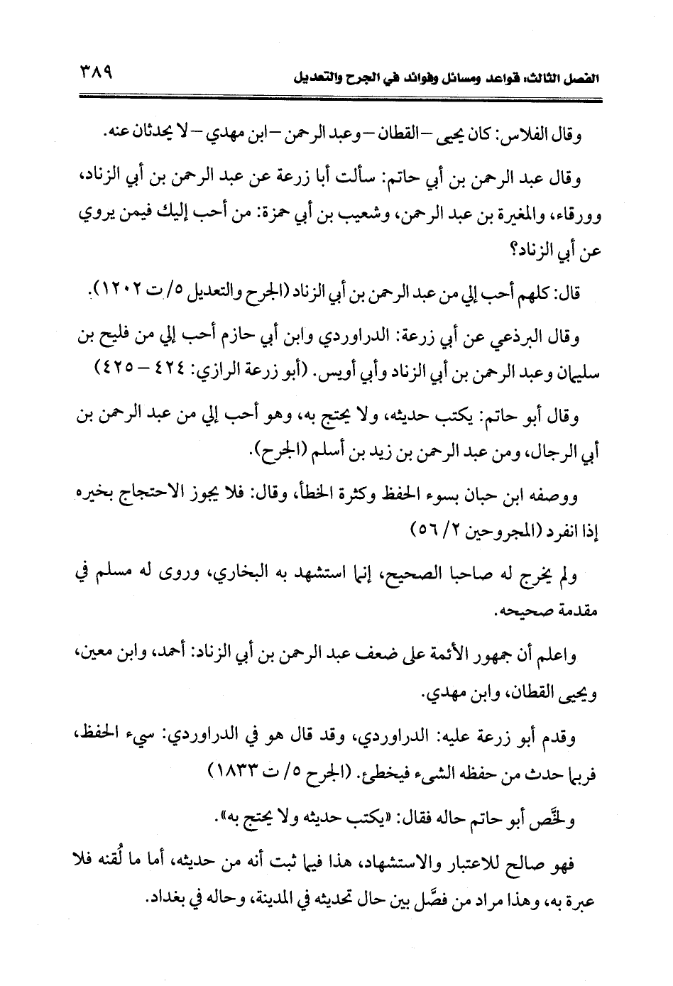 قال: كلهم أحب إلي من عبد الرحمن بن أبي الزناد (الجرح والتعديل 5 / ت 1202).