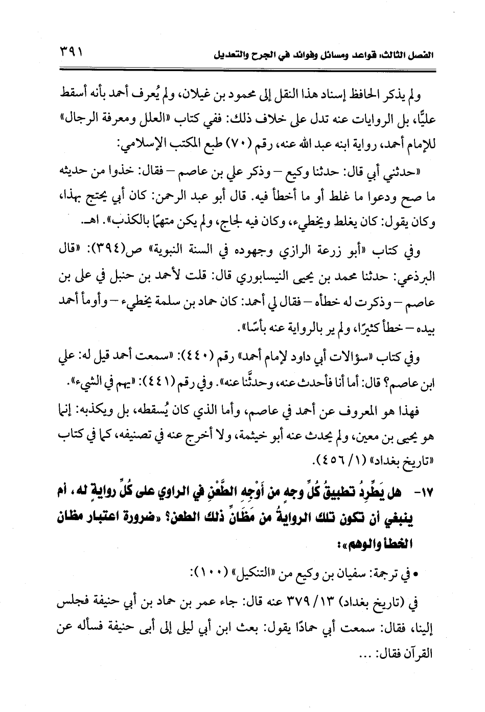 17 - هل يَطِّرِدُ تطبيقُ كُلِّ وجهٍ من أَوْجِهِ الطَّعْن في الراوي على كُلِّ روايةٍ له، أم ينبغي أن تكون تلك الروايةُ من مَظَانَ ذلك الطعن؟ "ضرورة اعتبار مظان الخطأ والوهم":