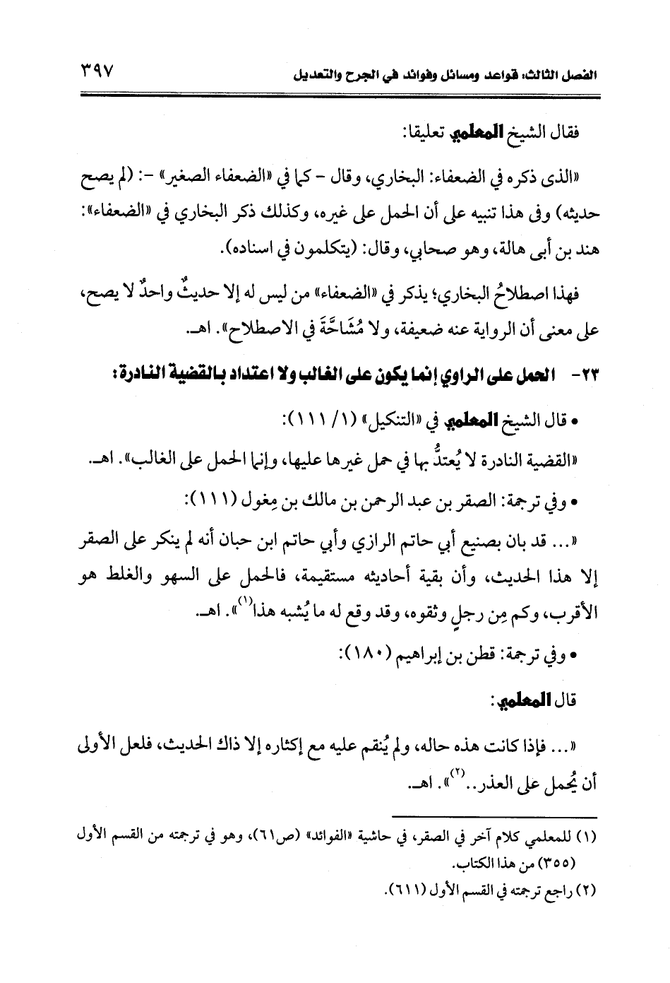 • قال الشيخ المعلمي في "التنكيل" (1/ 111):