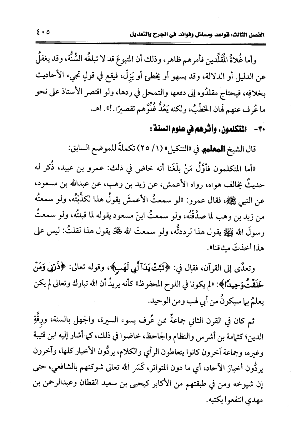 قال الشيخ المعلمي في "التنكيل" (1/ 25) تكملةً للموضع السابق: