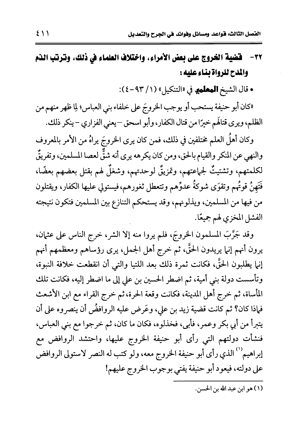 32 - قضية الخروج على بعض الأمراء، واختلاف العلماء في ذلك، وترتب الذم والمدح للرواة بناء عليه: