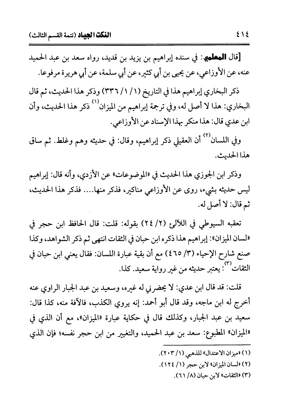 تعقبه السيوطي في اللآلىء (2/ 24) بقوله: قلت: قال الحافظ ابن حجر في "لسان الميزان": إبراهيم هذا ذكره ابن حبان في الثقات انتهى ثم ذكر الشواهد، وكذا صنع شارح الإحياء (3/ 465) مع أن بقية عبارة اللسان: فقال يعني ابن حبان في الثقات (¬3): يعتبر حديثه من غير رواية سعيد. كذا.