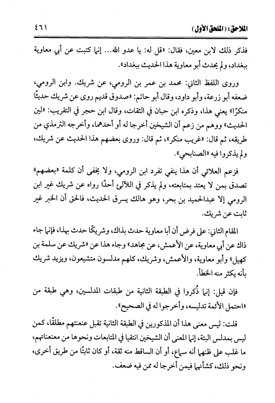 المقام الثاني: على فرض أن أبا معاوية حدث بذاك، وشريكًا حدث بهذا، فإنما جاء ذاك عن أبي معاوية، عن الأعمش، عن مجاهد" وجاء هذا عن "شريك عن سلمة بن كهيل" وأبو معاوية، والأعمش، وشريك، كلهم مدلسون متشيعون، ويزيد شريك بأنه يكثر منه الخطأ.