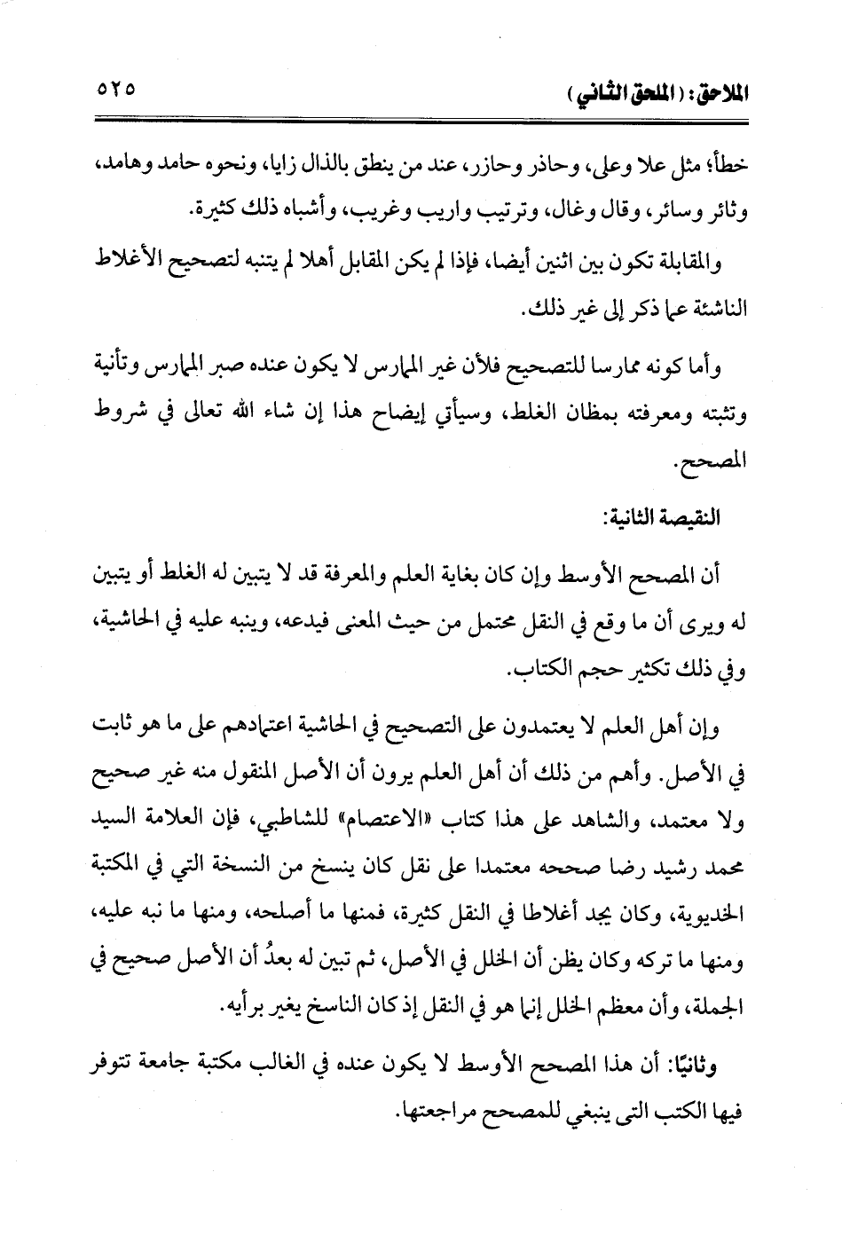 وثانيًا: أن هذا المصحح الأوسط لا يكون عنده في الغالب مكتبة جامعة تتوفر فيها الكتب التي ينبغي للمصحح مراجعتها.