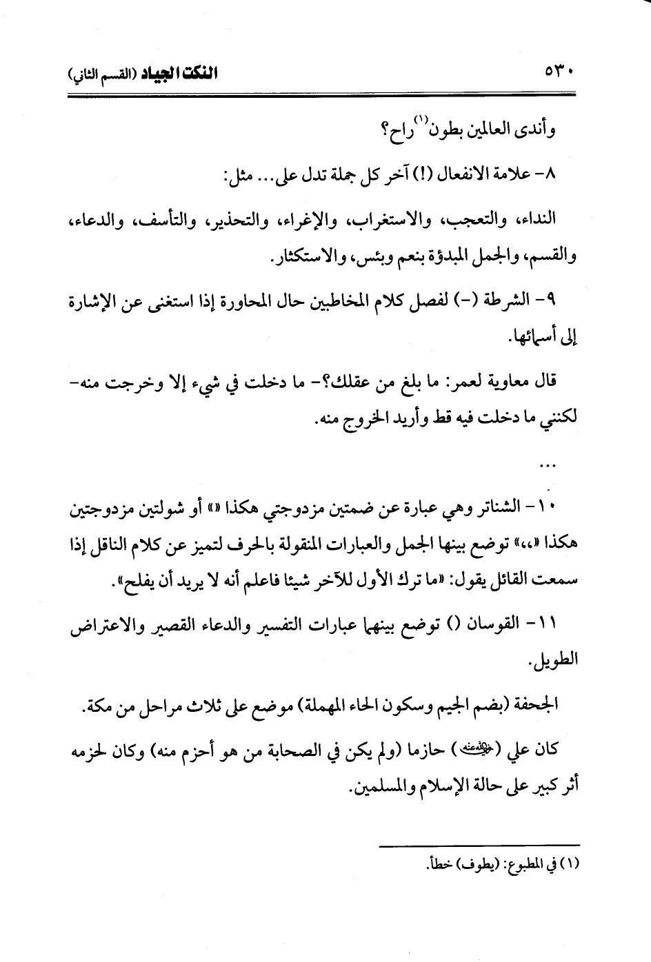 11 - القوسان () توضع بينهما عبارات التفسير والدعاء القصير والاعتراض الطويل.