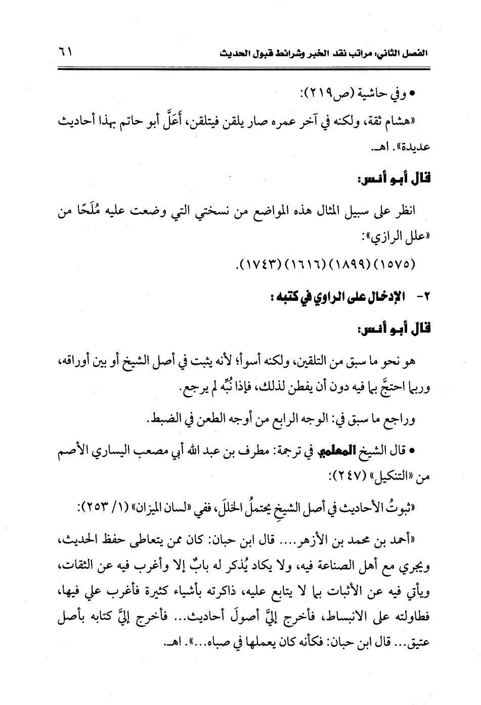 • قال الشيخ المعلمي في ترجمة: مطرف بن عبد الله أبي مصعب اليساري الأصم من "التنكيل" (247):